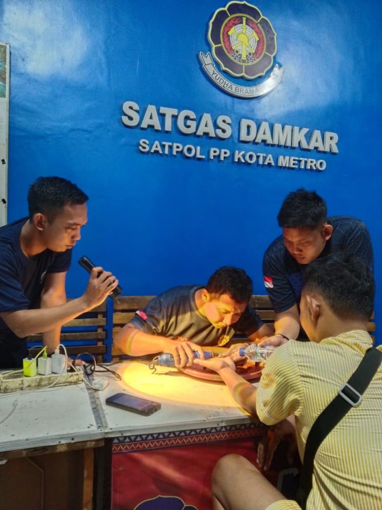 • Mendapati hal tersebut bapak Aditya mendatangi posko Damkar dan Penyelamatan Satpol Pp Kota Metro untuk meminta bantuan melepas cincin tersebut.
