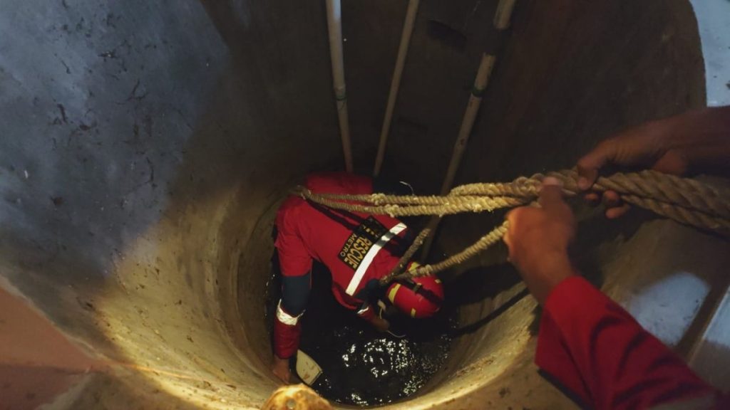 Damkar dan penyelamatan Kota Metro mendapat laporan perihal tentang evakuasi kucing yang masuk dalam sumur. Yang beralamatkan di :