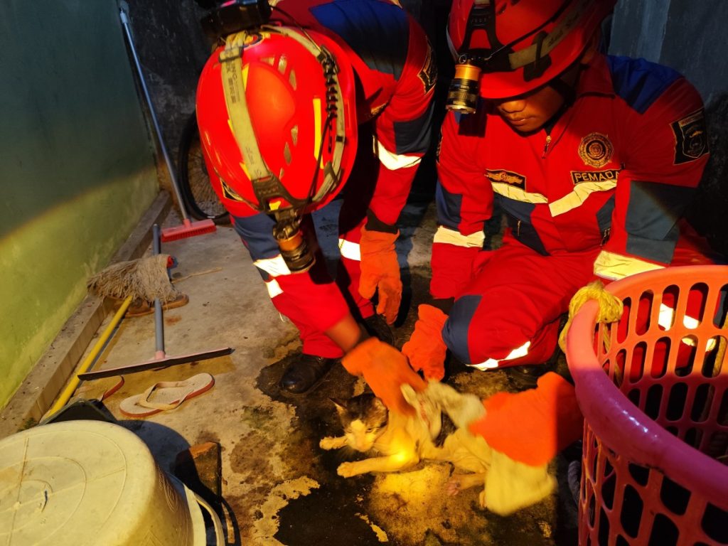 - Evakuasi berlangsung selama 25 menit dan kucing berhasil dievakuasi oleh petugas.