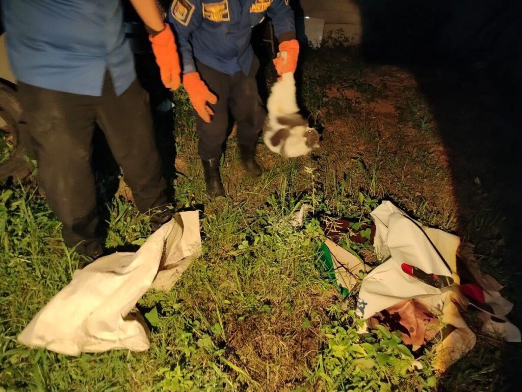 • Mendapat laporan tersebut, Petugas langsung menuju lokasi. Sesampainya di Lokasi Petugas langsung melakukan evakuasi kucing tersebut.