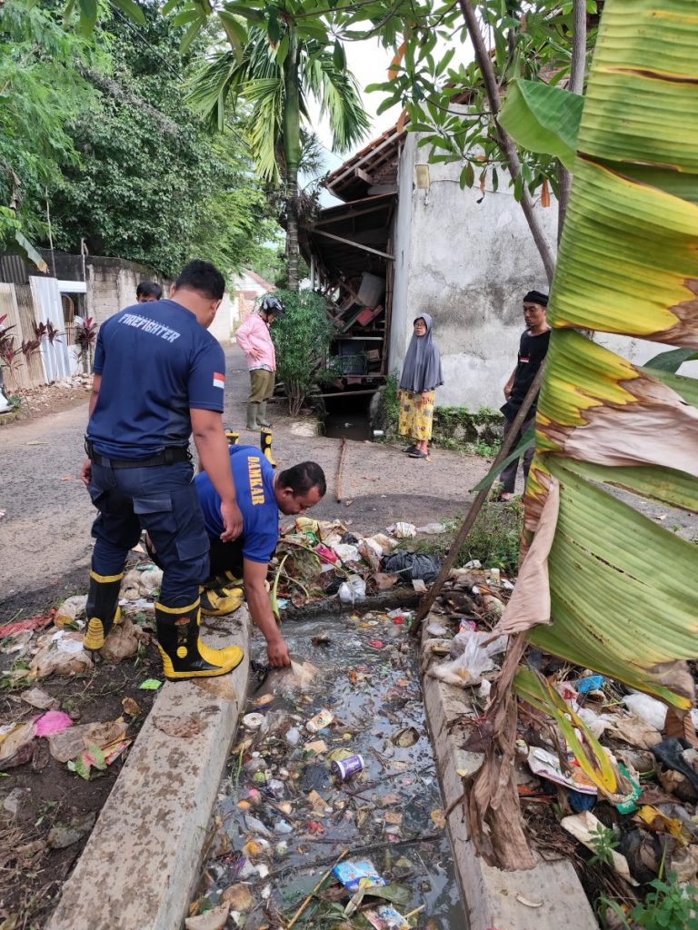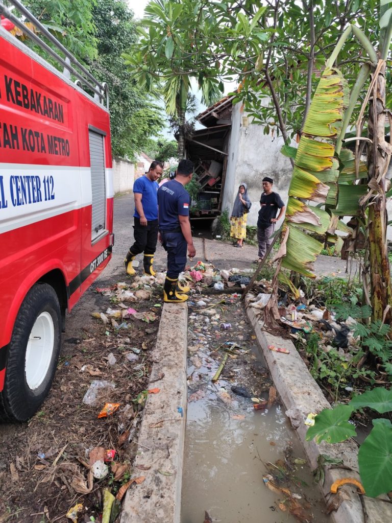 Satgas Damkar dan Penyelamatan Satpol PP Kota Metro menindak lanjuti laporan warga perihal Saluran Air Tersumbat yang beralamatkan di ;