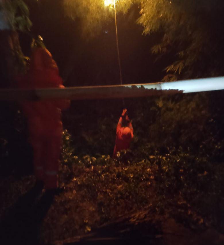 - Sesampainya di lokasi pukul 06.35 wib satgas damkar melihat kondisi TKP. Setelah di cek, kondisi tidak memungkinan untuk melakukan evakuasi pada saat itu juga.