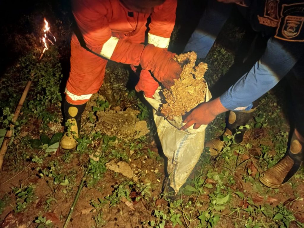 • pada pukul 21:35 wib satgas damkar kembali ke tkp guna melakukan giat evakuasi sarang tawon tersebut.