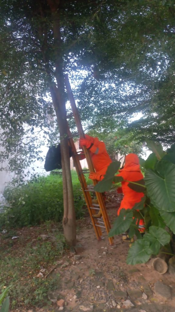 • Dikhawatirkan membahayakan , bapak Riananda Menghubungi Posko Satgas Damkar dan Penyelamatan Satpol Pp Kota Metro untuk meminta bantuan mengevakuasi sarang tawon tersebut.