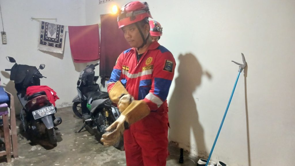 - Sesampainya di TKP pada pukul 23:48 WIB personel pun langsung melakukan evakuasi tokek tersebut.