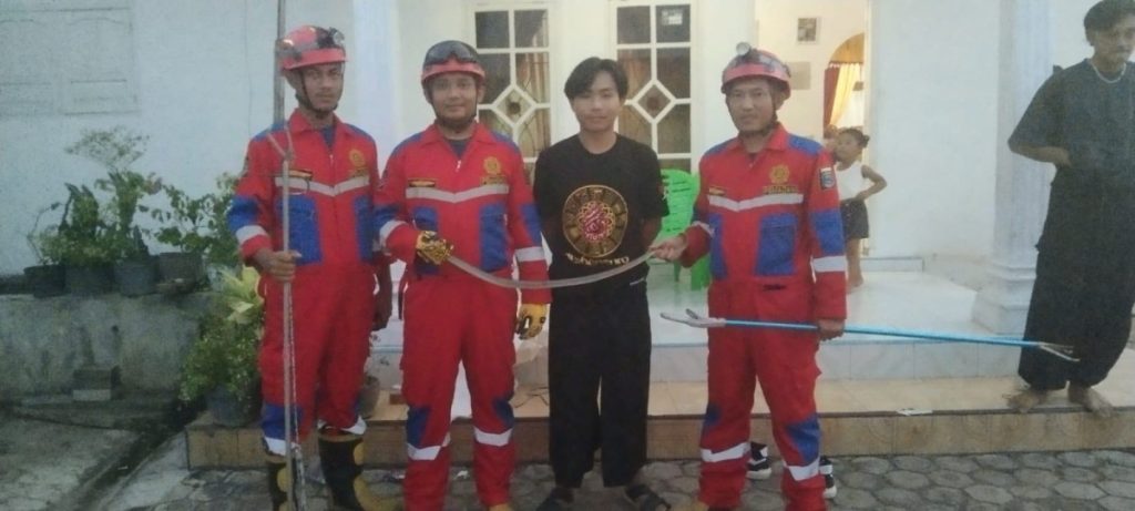 • Pukul 17:40 Wib petugas tiba di lokasi dan langsung melakukan evakuasi , evakuasi berlangsung selama kurang lebih selama 25 menit berjalan lancar dan ular tersebut berhasil di evakuasi oleh petugas.