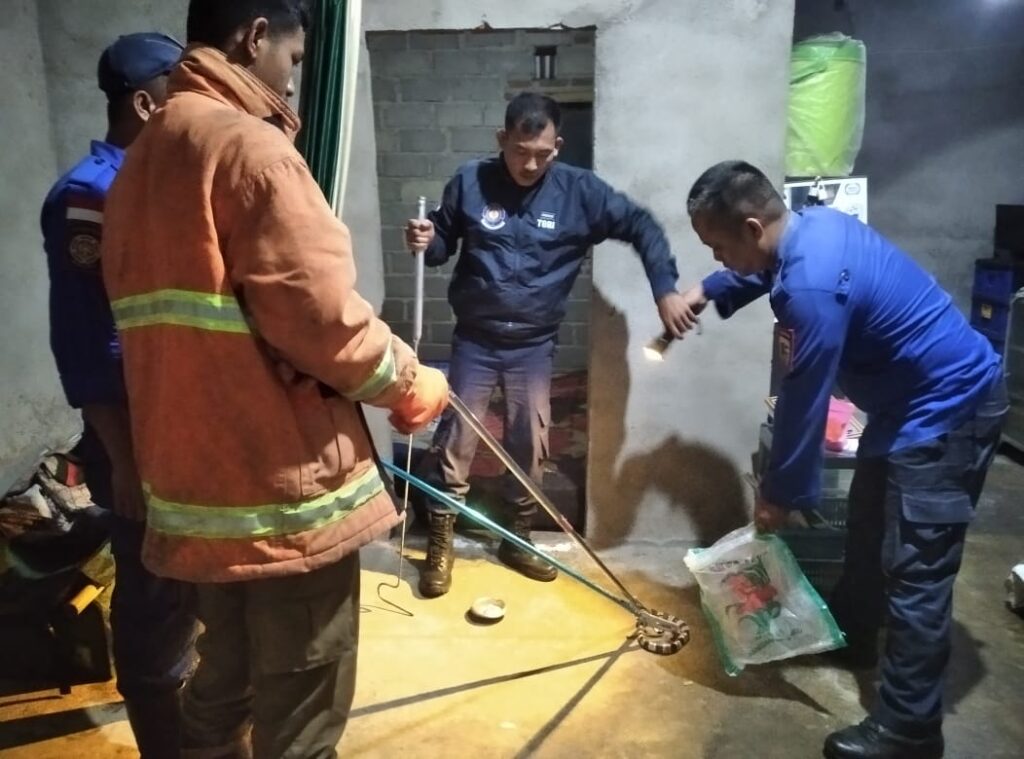 Damkar dan Penyelamatan SAT Pol PP Kota Metro mendapat laporan perihal ular berjenis weling dirumah Saudara Mahfud Huda di jalan kalelawar RT034/RW013, Kelurahan Hadimulyo Timur, Metro Pusat, Kota Metro.