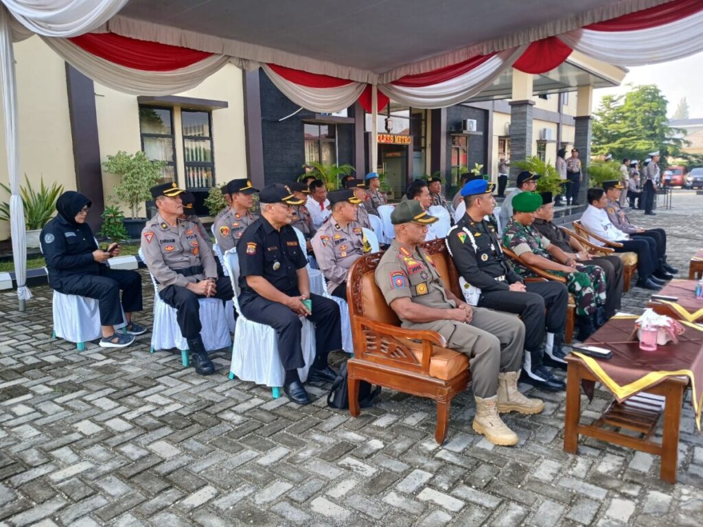 Kapolres Metro AKBP Heri Sulistyo Nugroho S.IK, M.IK di dampingi oleh Walikota Metro yang dalam kesempatan ini di wakili oleh Sekda Kota Metro Bangkit Haryo Utomo memimpin Apel Gelar Pasukan Operasi Ketupat.