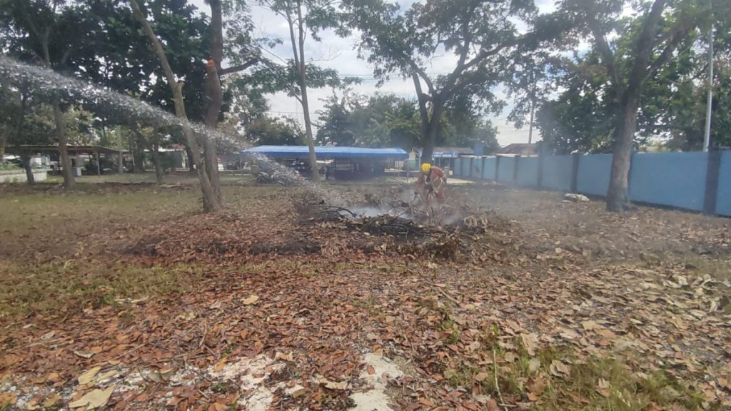 - Pukul 12:00 wib petugas beserta armada damkar tiba di lokasi , ketika sampai dilokasi masih terdapat nyala api selanjutnya petugas langsung melakukan pemadaman.