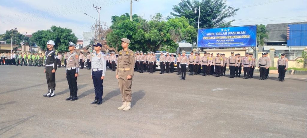 Pada Hari Senin Tanggal 14 Juli 2024 pukul 07.30 wib s.d selesai Kepala Satuan Polisi Pamong Praja Kota Metro dan Anggota Satuan Polisi Pamong Praja Kota Metro Hadir dalam kegiatan Apel Gelar Pasukan Operasi Patuh Krakatau 2025 di Halaman Polres Metro.