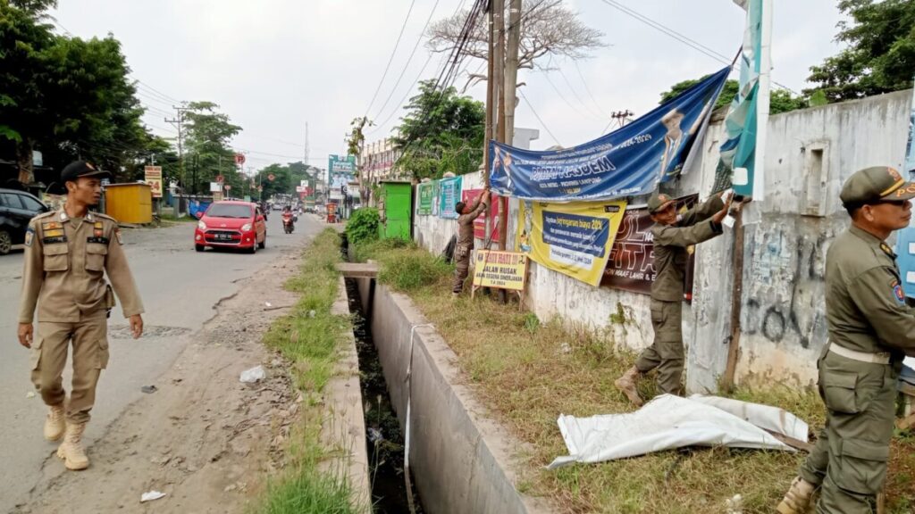 - Baleho dan benner iklan yang terpasang di fasilitas umum, Dan di pohon penghijauan.