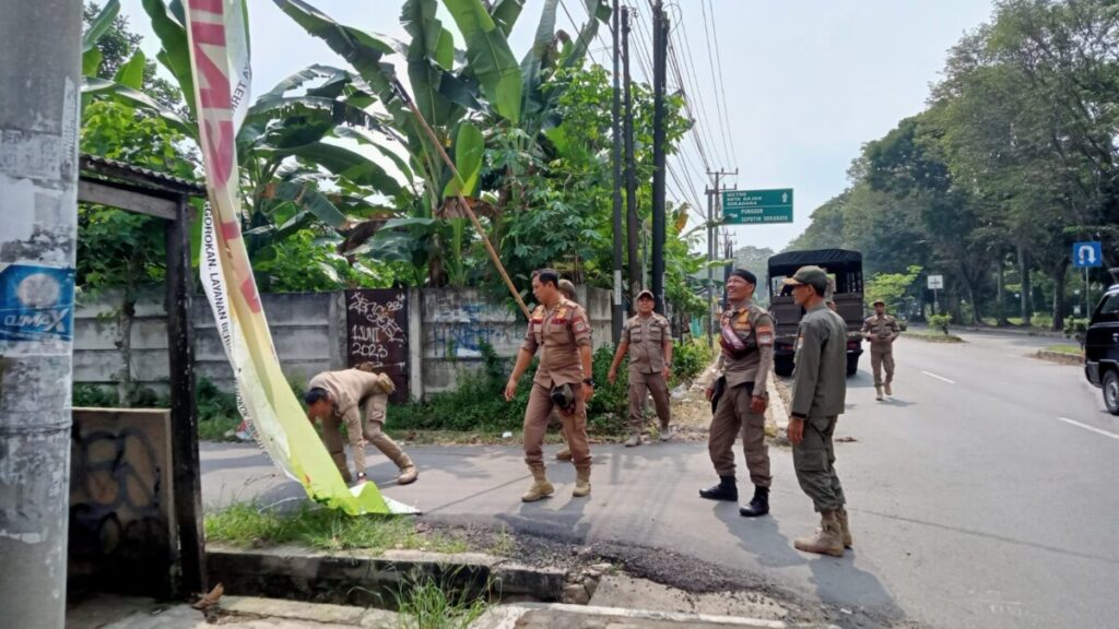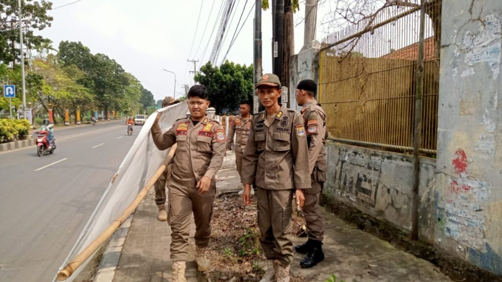 - Baleho dan benner iklan yang terpasang di fasilitas umum, Dan di pohon penghijauan.