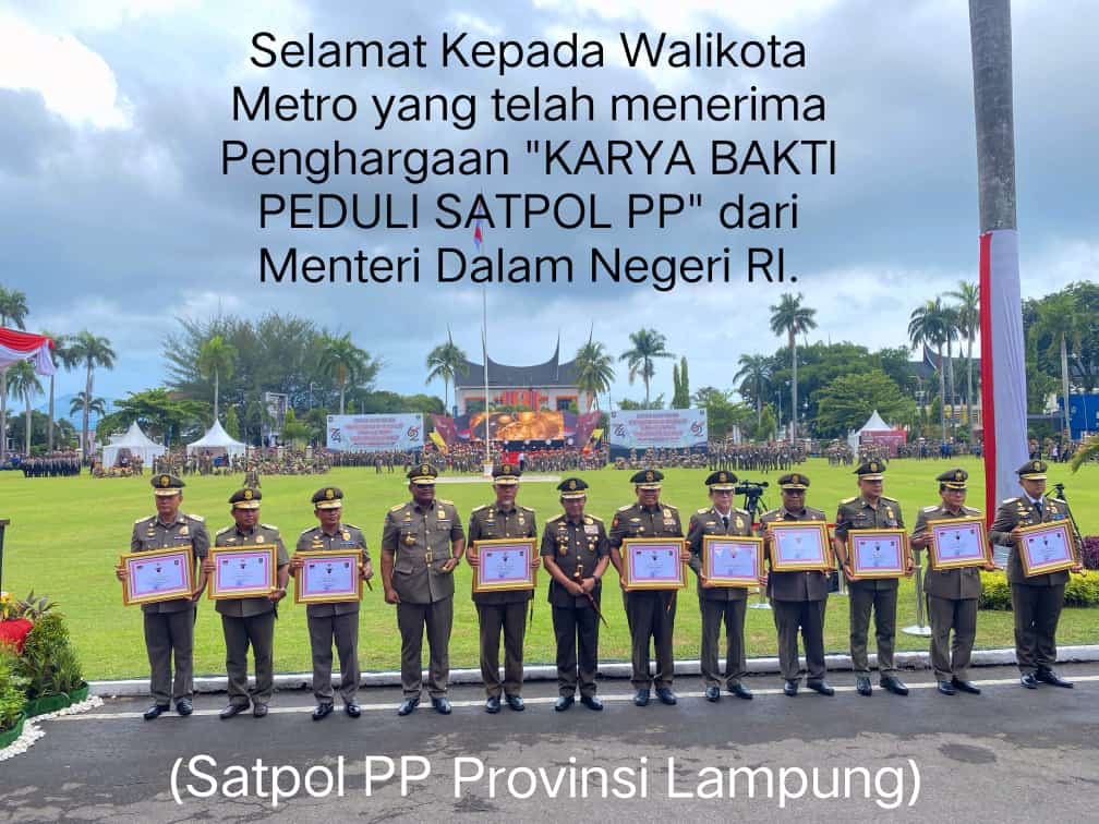 Pada Hari Minggu Tanggal 03 Maret 2024 Walikota Metro dr. H. Wahdi Sirajuddin, Sp.OG., MH. Menerima Penghargaan Karya Bhakti Peduli Satpol PP dalam rangka Hari Jadi Satpol PP KE-74 dan Satlinmas Ke-62 yang diberikan langsung oleh Menteri Dalam Negeri Republik Indonesia Prof. Dr. H. Muhammad Tito Karnavian, B.A., M.A., Ph.D. yang bertempatkan di Padang Sumatera Barat.